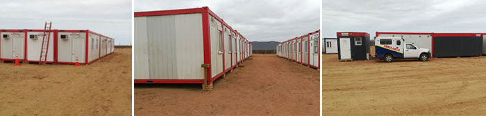 Este proyecto Incluye Ingeniería, Diseño  de Oficinas, montaje y conexión a red eléctrica existente, como area al nuevo barrio de contratistas , 280 mt2, instalado dentro de un edificio existente, área del TITAN, más 5 bodegas exteriores . Contrato tipo EPC